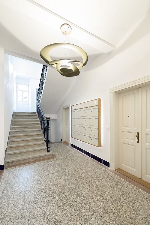 Celý dům prošel rozsáhlou rekonstrukcí. Díky řešení Shell & Core má budoucí majitel jednotky možnost individuálně upravit interiér podle vlastního vkusu.