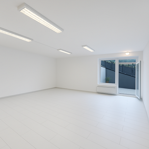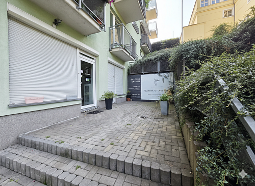 Výloha je osazena elektrickou bezpečnostní roletou značky LOMAX a celý prostor je vybaven bezpečnostním alarmem. Před vstupem lze vybudovat menší venkovní posezení nebo zahrádku, což rozšiřuje možnosti využití. Jednotka je vhodná pro širokou škálu podnikatelských záměrů – od obchodu a showroomu přes kancelář až po provozovnu služeb či menší gastronomii.